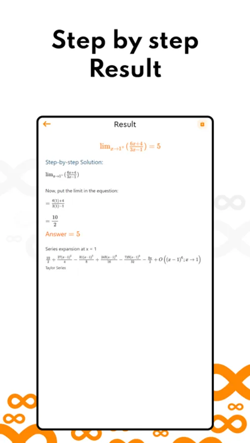 Tap the calculate button and the limits calculator provides a step-by-step solution on your device screen.