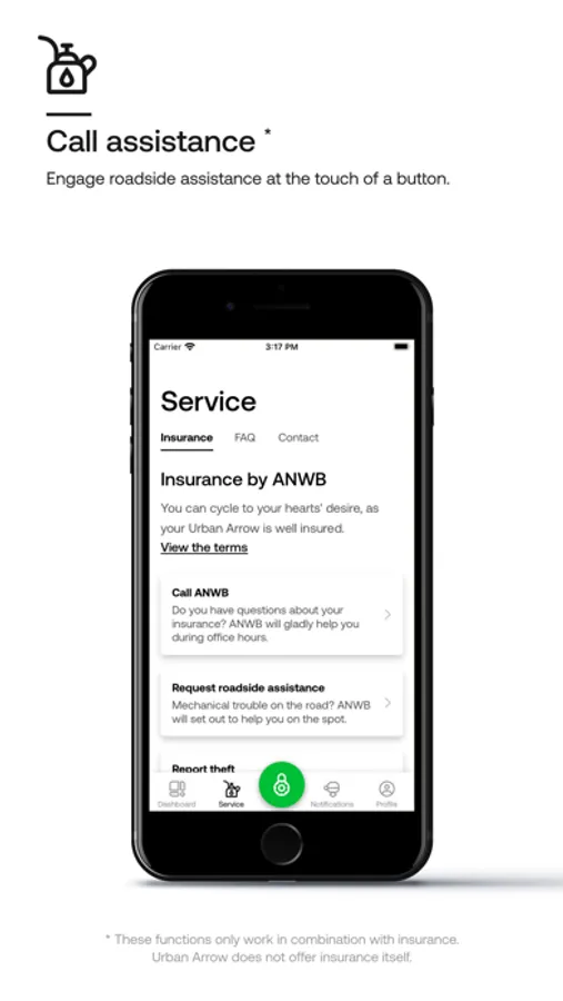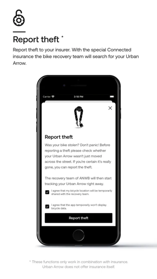 ** These functions only work in combination with insurance. Urban Arrow does not offer insurance itself. Contact your Urban Arrow dealer to find out more.