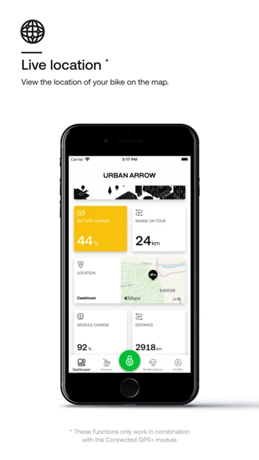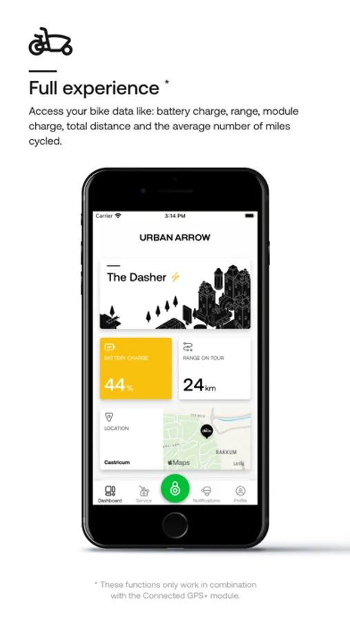 The Connected GPS+ module can only be installed in your Urban Arrow by an official Urban Arrow dealer. Once the module is installed, you can connect your Urban Arrow to this app.