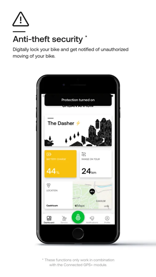 With the Urban Arrow Connected app, you protect your Urban Arrow against bicycle theft. Urban Arrow Connected consists of two components. The Connected GPS+ module and the Urban Arrow app.