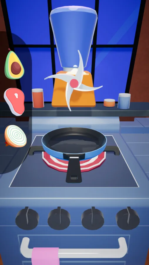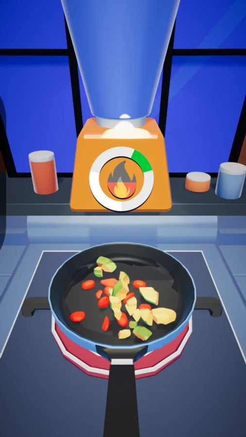 Sling shot your ingredients into the slicer. The pan already hot and filled with your ingredients sliced up. Watch out the cook meter to make it perfect. Last but not least shake your pan and let the table do the rest ! Check how you cook with the stars you get at the end of the level. Have Fun with Slice N Cook !