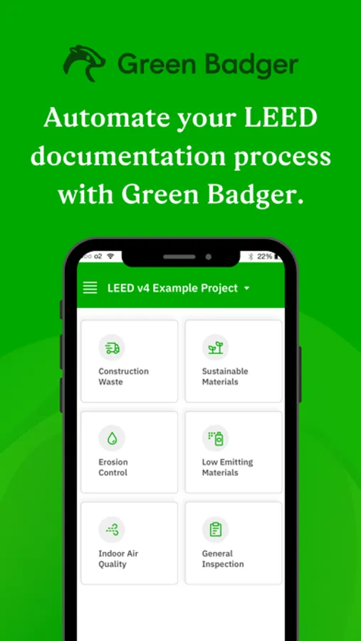Instantaneous LEED® documentation and verification, at your fingertips. Green Badger LEED Documentation is the simplest and most convenient way for those working on LEED projects to document and verify LEED construction credits right from your smartphone or tablet. Reduce the head-banging, cut out paperwork, instantly verify VOC content, and provide real-time updates to team members and owners of LEED construction credits for an unlimited number of projects*. Search our database of sustainable materials to automatically document BPDO credits, and export all required calculators, reports and backup suitable for LEED credit documentation!