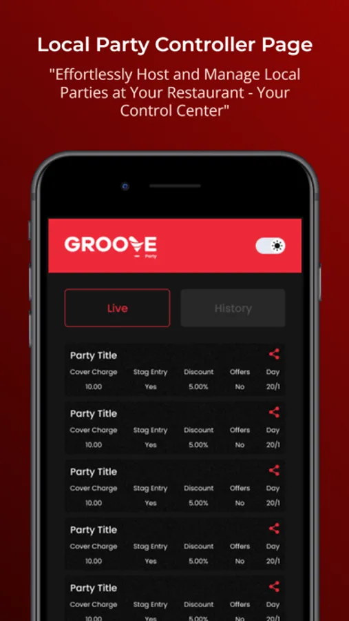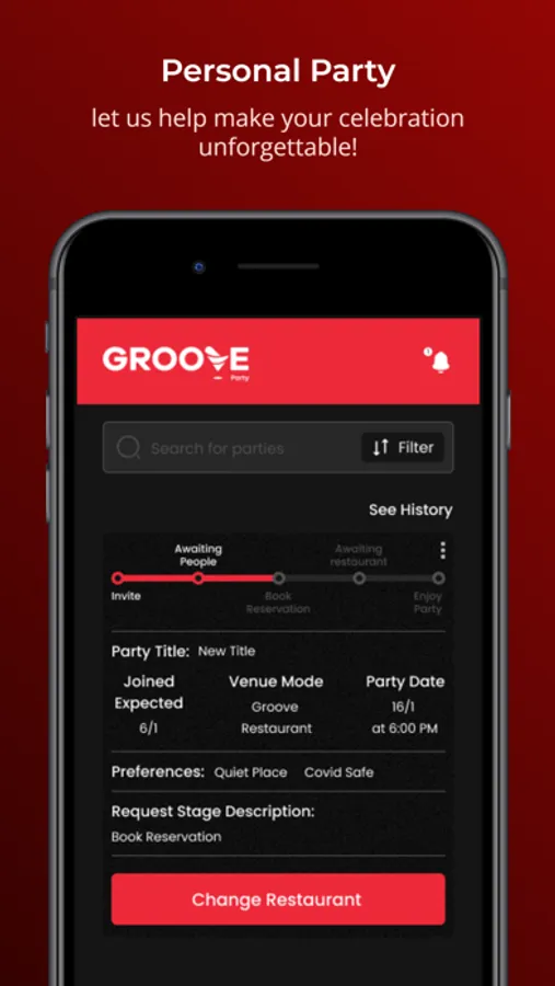 Click on “Private Party” and then on the “+” icon on top and choose your preferred place and time and share a Groove invite with your guests and it’s done. You can also keep a track of who’s coming and who’s not.