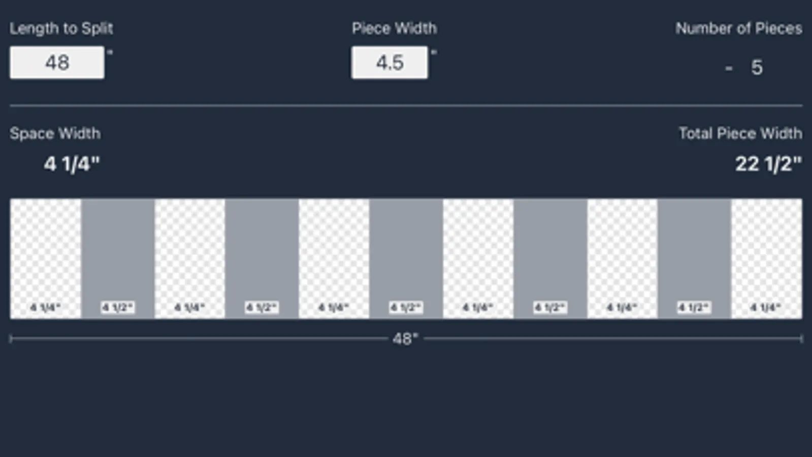 Discover the ultimate solution for effortlessly achieving evenly spaced layouts with the Even Spacing Calculator. Whether you're a woodworker, a DIY enthusiast, or an interior designer, this powerful tool will streamline your projects and save you valuable time.