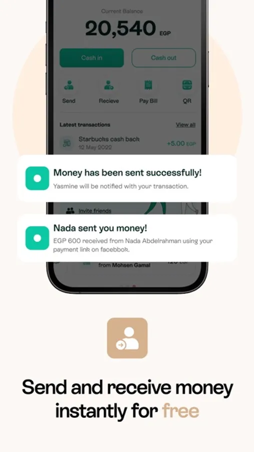 - Send and receive money from any wallet in Egypt