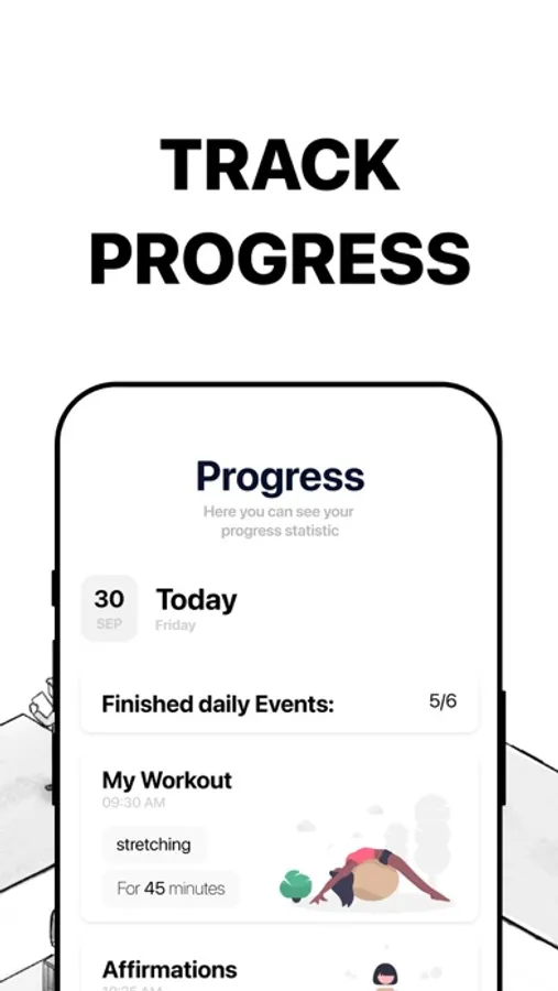The list of provided options are really impressive: task manager, workout tracker, ready-made daily habits, skin care, affirmations, meditation, etc. And there you have it! You easily track your progress and all statistics you need. You can do this on a daily, weekly or monthly basis.