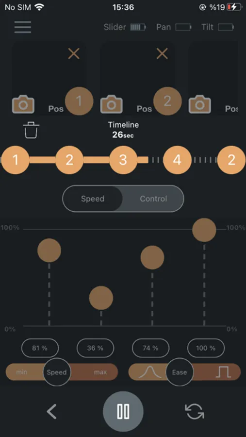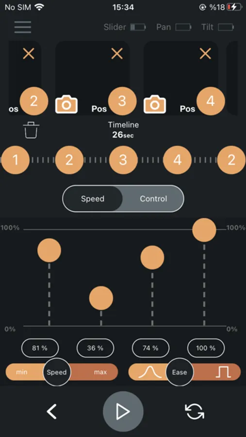 Trexo Slider app connects your phone through Bluetooth instantly to Trexo Slider when you turn on the device. With its intuitive interface the app makes it a breeze to control your Trexo Slider. Program and execute multi point slide movements.
