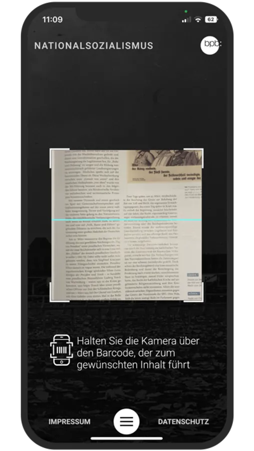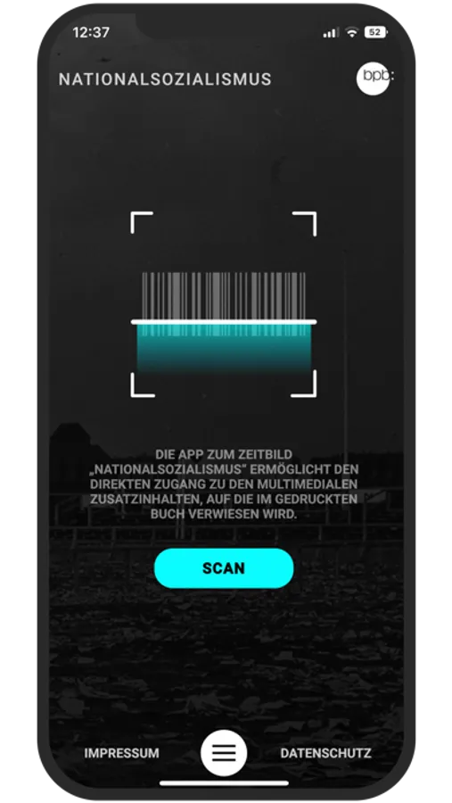 Die App kann nur in Verbindung mit dem gedruckten Buch verwendet werden. Sie haben das Zeitbild noch nicht vor sich liegen? Gleich hier bestellen: https://www.bpb.de/shop/buecher/zeitbilder/516106/nationalsozialismus/