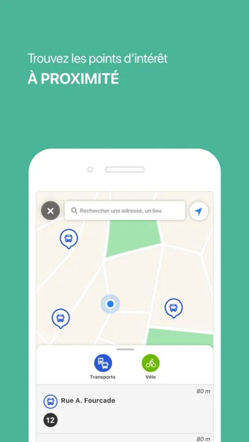 - Recherche d’itinéraires en transports en commun, vélo, voiture et, bientôt, à pied