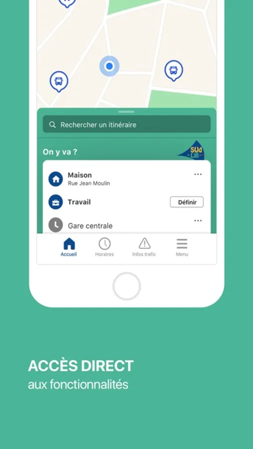 - Enregistrement de destinations favorites (travail, domicile, salle de sport…), stations et gares en 1 clic