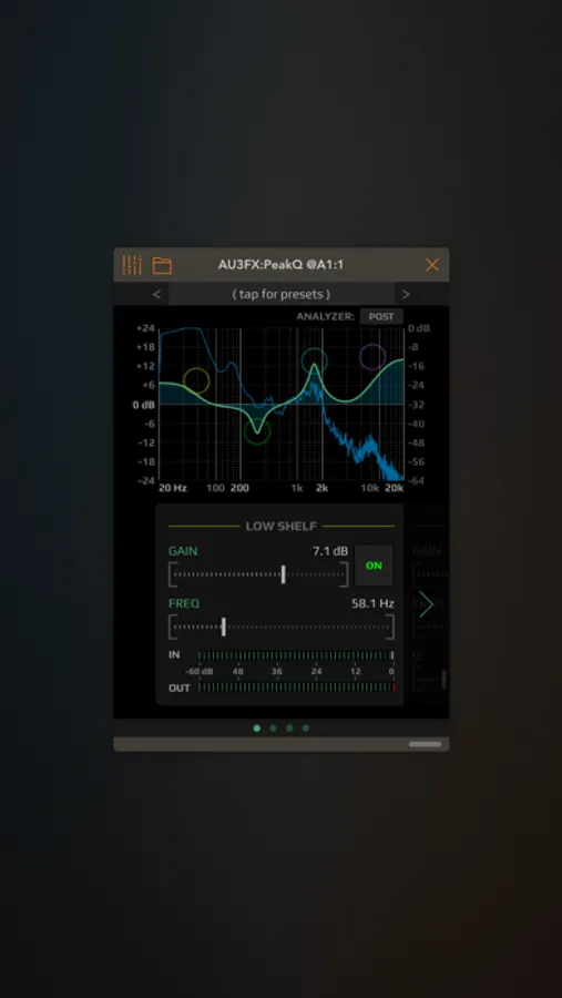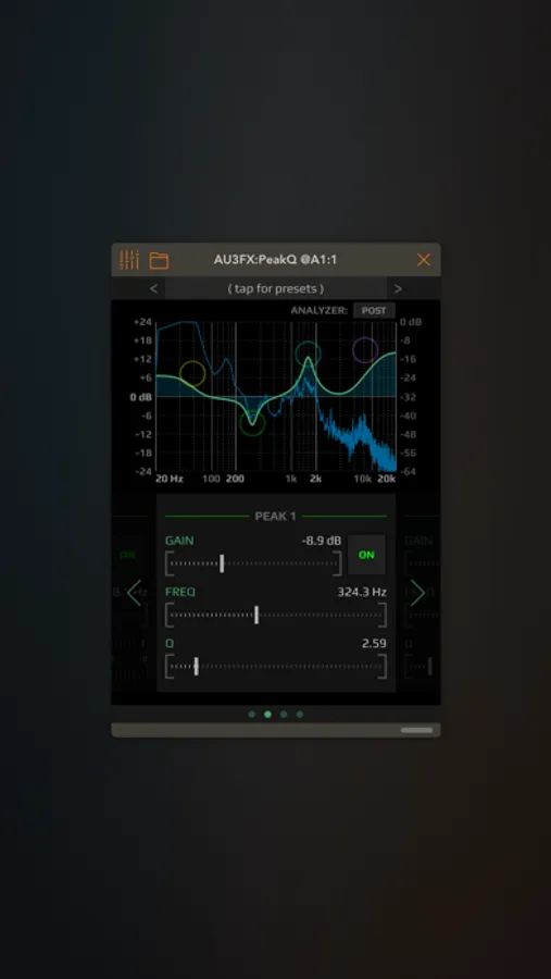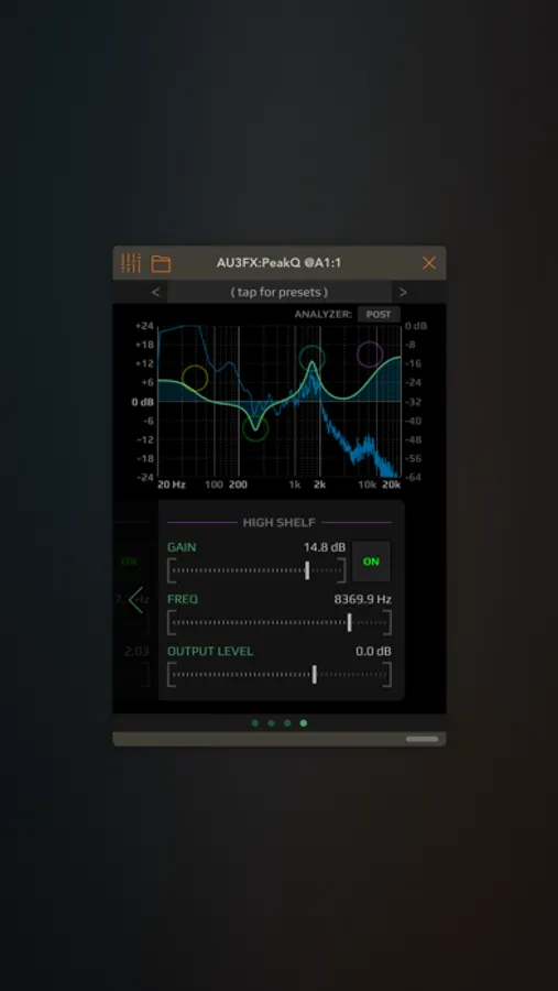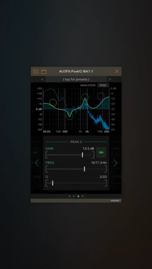 A versatile 4-band parametric stereo equalizer AUv3 plugin for everything between subtle frequency enhancements to agressive boosting/cutting or special resonator effects.