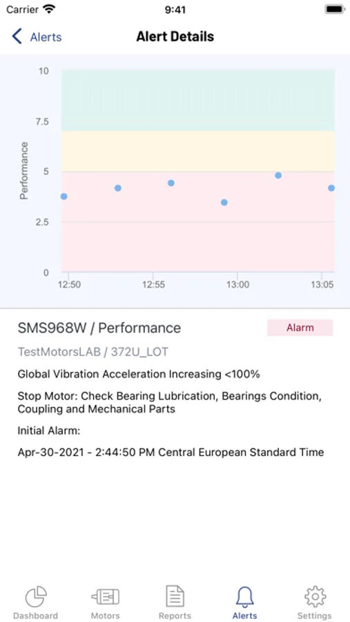 • View plots and charts captured by the SMS, including Vibration RMS, Time Waveform and FFT