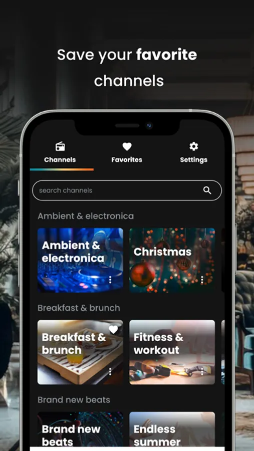 Over 41 thematic channels divided by and studied for each type of commercial activity, music genre and mood. You will always have the perfect sound to accompany your clientele.