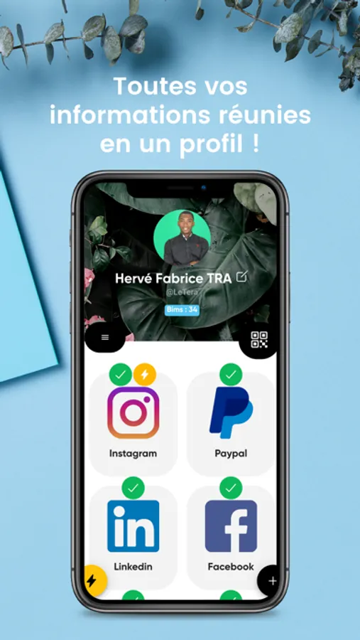 Vous ne souhaitez pas partager l'intégralité de votre profil bim! ? Activez bim! Flash pour faire apparaître directement votre Instagram, LinkedIn, votre carte de contact ou tout autre lien.