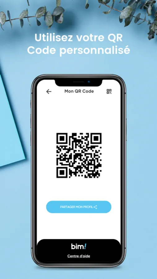 L'application bim! vous permet de personnaliser votre profil, ce qui vous permet facilement de partager vos informations avec d'autres personnes lors de n'importe quel événement.