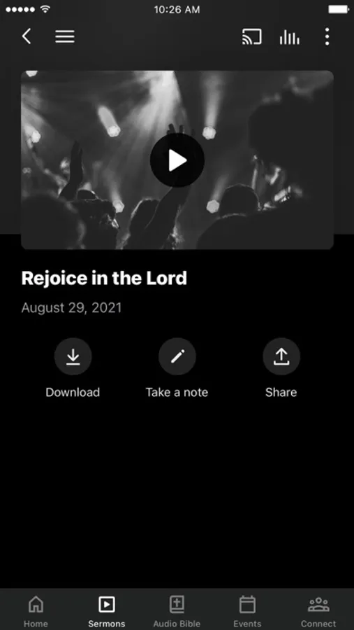 This app will help you stay connected with the day-to-day life of our church. With this app you can: watch or listen to past messages; stay up to date with push notifications; share your favorite messages via Twitter, Facebook, or email; and download messages for offline listening.