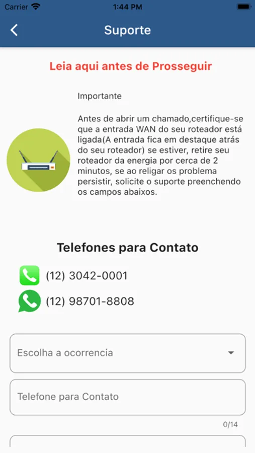 Solicitar Suporte.
