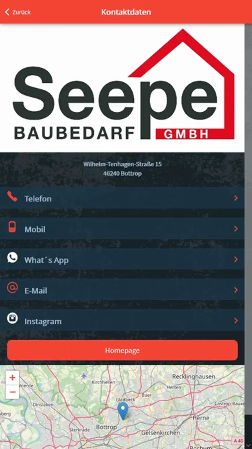 Die App bietet die Möglichkeit, der schnellen Kontaktaufnahme und den richtigen Ansprechpartner zu finden. Kompetente Beratung und Service stehen hierbei im Vordergrund. Seit über 30 Jahren vertreibt Oliver Seepe hochwertige Bauprodukte für Hoch- und Tiefbau der Marke "hahne".