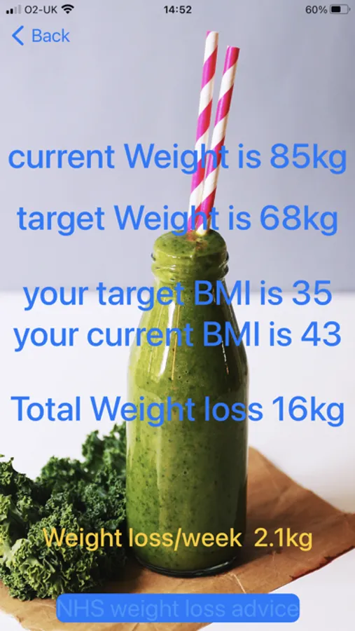 The BMIadvisor app provides daily advice on weight loss required to achieve a target BMI over a predicted amount of time. Most hospitals in the UK require a BMI less than 35 or 40 to allow safe surgery to go ahead. This app also provides direct access to the NHS weight-loss website.