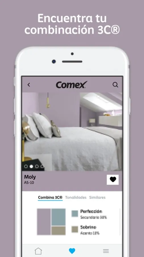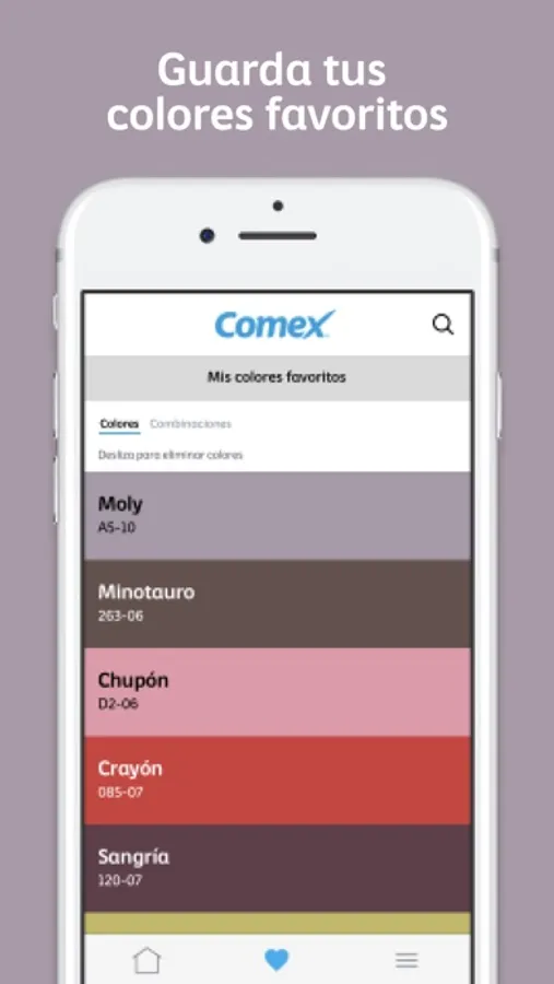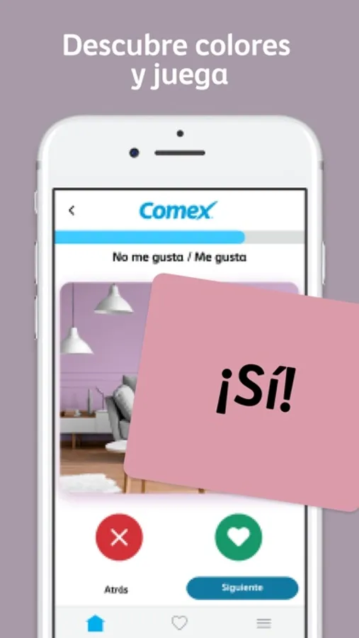 Con esta aplicación podrás jugar con las paletas de colores de los productos de Comex, para decidir que tonos se ven mejor en la habitación que desees decorar.