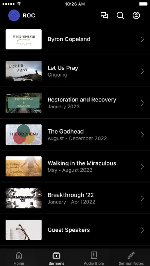 This app will help you stay connected with the day-to-day life of the ROC. With this app you can: watch or listen to past messages; stay up to date with push notifications; share your favorite messages via Twitter, Facebook, or email; and download messages for offline listening.