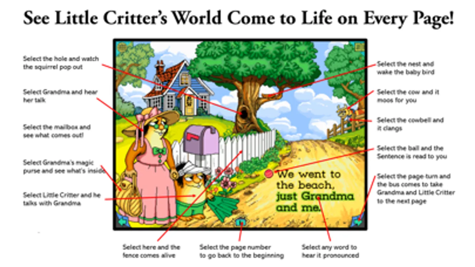Did you ever wish you could step into the middle of your favorite storybook? Now, with Wanderful's interactive storybooks, your children can. In Just Grandma and Me, lively animation, sound effects, talking characters and music all work together to make the story come to life. In addition, background sounds and continuing animation create a sense of reality. You can almost feel the sand in your shoes!