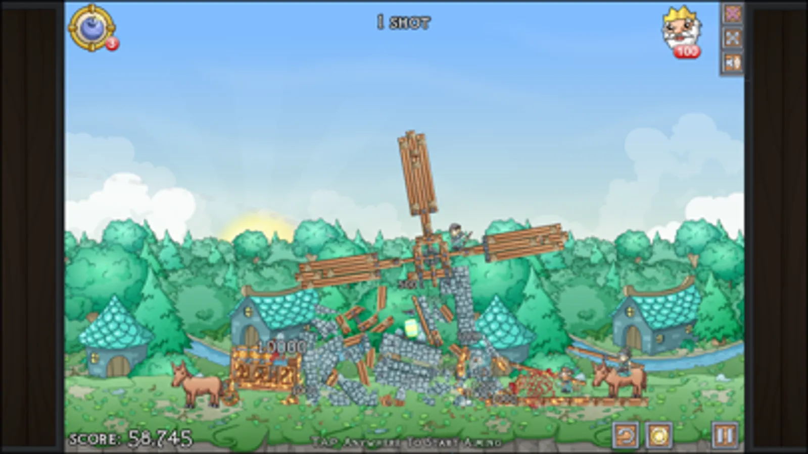 -Fling rocks, bombs, and more at monumental towers and castles to bring them to their knees!