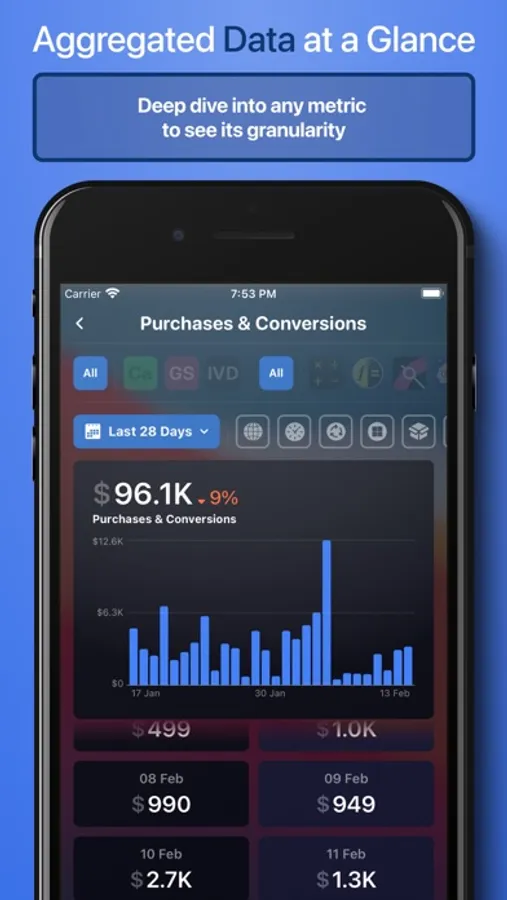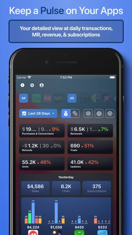 • Overview – beautifully designed dashboard to get a comprehensive snapshot of all apps.