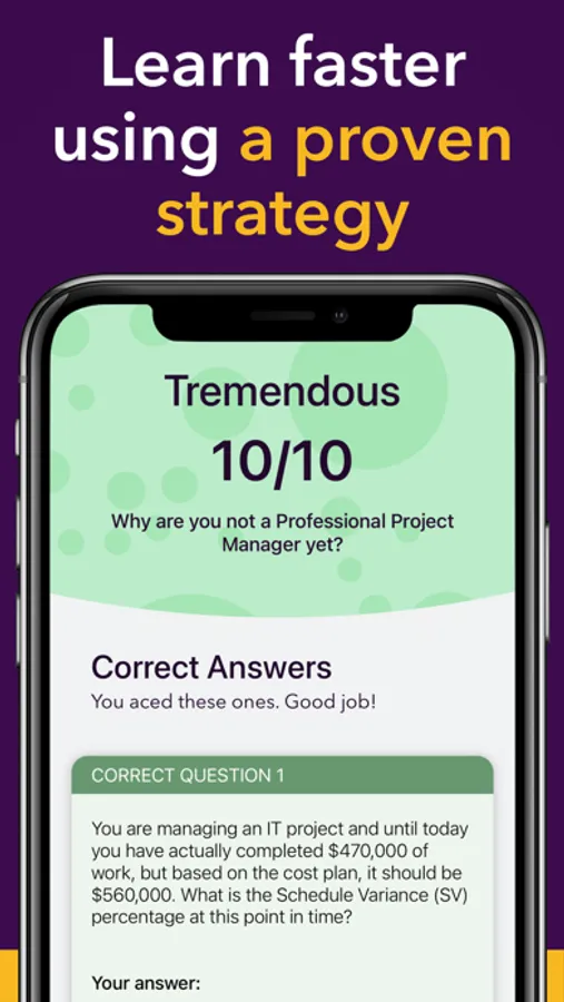 Our premium (paid) content contains 5000+ exam-like questions, 1000+ flashcards, over a dozen practice tests, and real-life scenarios that make Ultraprep the leading PMP app on the market today.