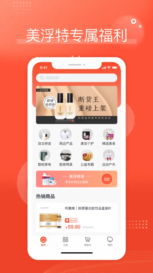 1.品类丰富:涵盖美浮特自主研发,美妆个护,精选美食,厨房用具等
