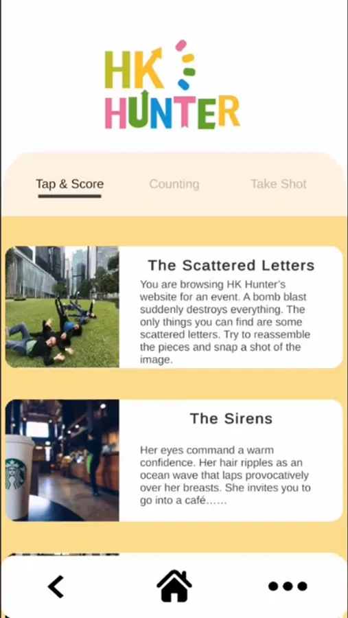 Player needs to solve the riddles and scan the secret images to trigger the AR missions. For each mission, player need to play a mini game and snap a picture.