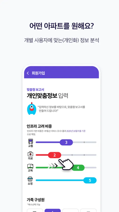 매매 참고 사항 설정 (가족구성, 직장, 학교, 인프라 고려순위)