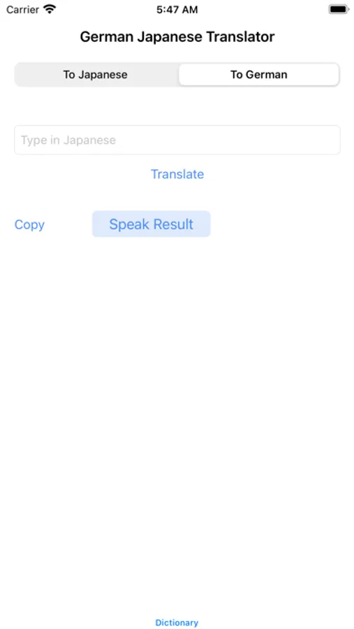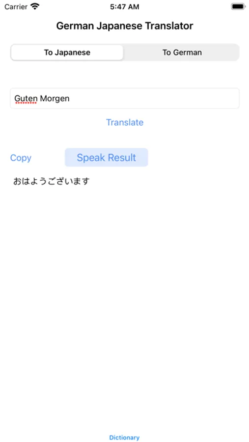 Using this app you can translate German to Japanese and Japanese to German, not limited to a single word, you can translate multiple sentences. After you translate, you can listen to both German or Japanese translation results.