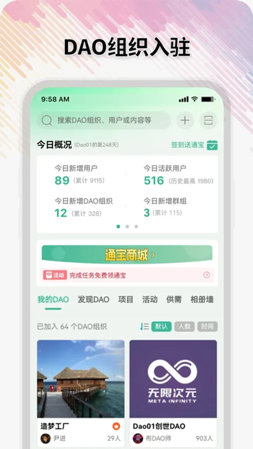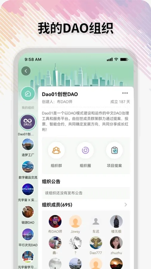 Dao01 — 中文DAO治理工具,学习交流Web3和元宇宙知识,结识志同道合的朋友一起把创新、创意付诸创造、创业的开放社区!