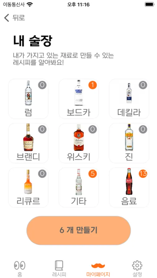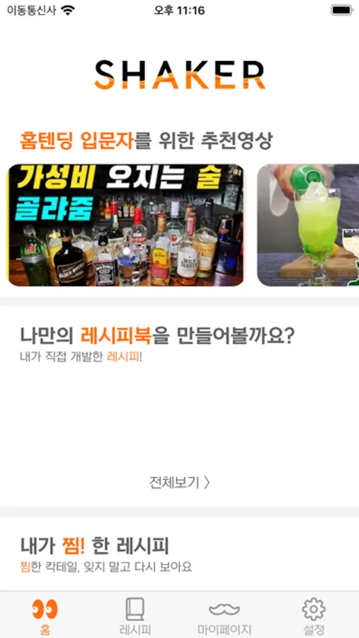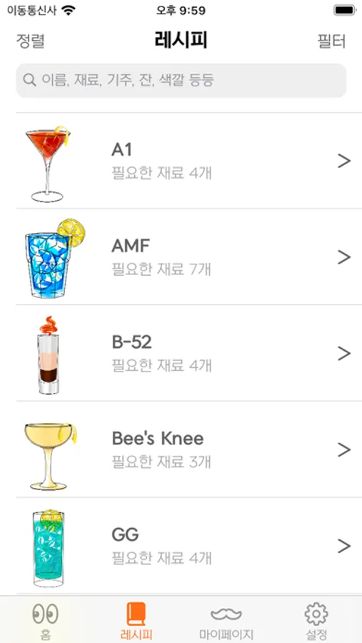 Q. 칵테일 레시피 한 눈에 볼 수는 없을까?
