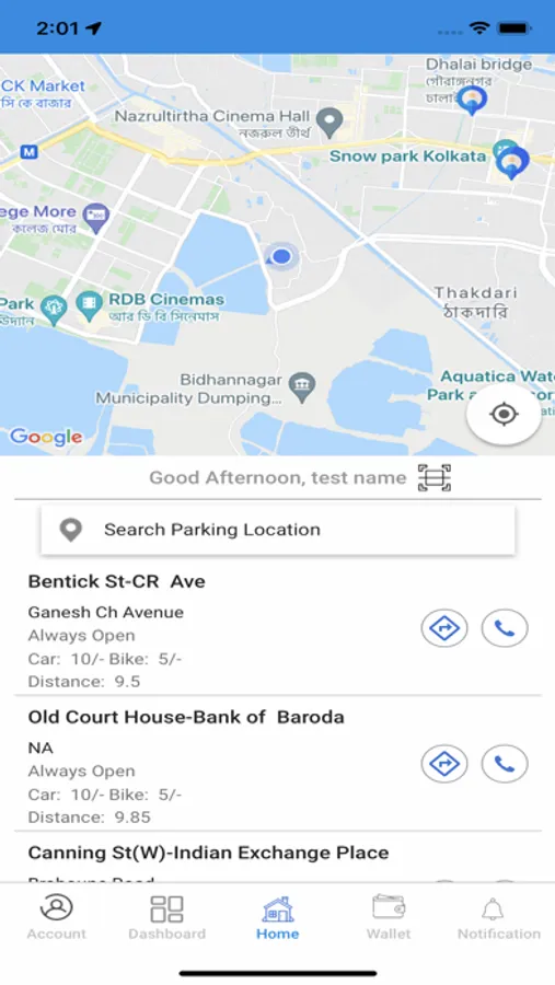 Green Markers denote Available and Red Markers denotes Full Parking. Then you tap on the marker to get the details of the Parking Area such as rates and available parking slots. You can now navigate to your desired Parking Area and park your vehicle by allowing the Agent to scan the QR generated in your smart phone against your vehicle. When you withdraw from the parking slot you will get a message on your mobile phone about parking charges to be paid to the operator.