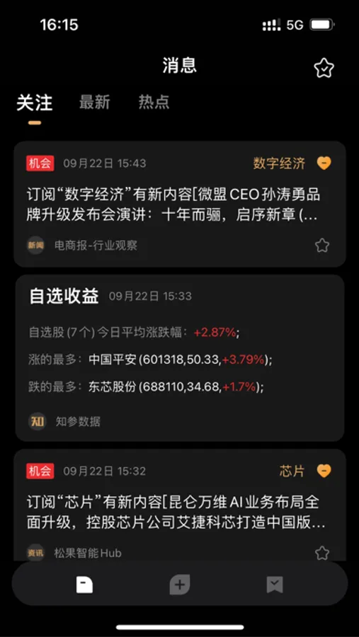 高效:用户可以自定义关注的个股和关键词,对个股和关键词的相关信息及时推送;