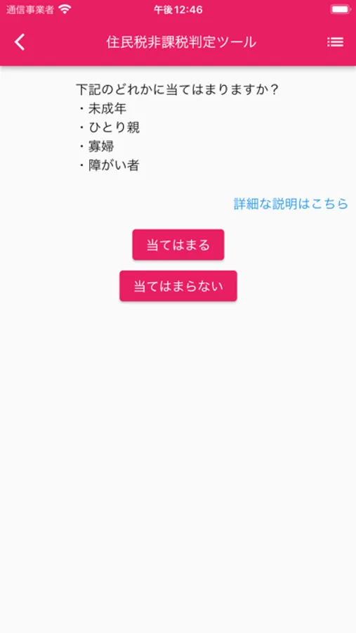 次の項目を入力するだけで、住民税が非課税となるかどうかを判定できます。