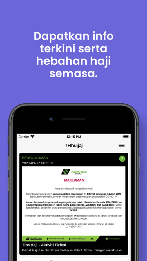 - Info terkini, hebahan maklumat semasa kepada jemaah haji