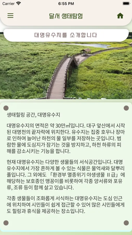대구 대명유수지를 관광하는 생태탐험 앱입니다.