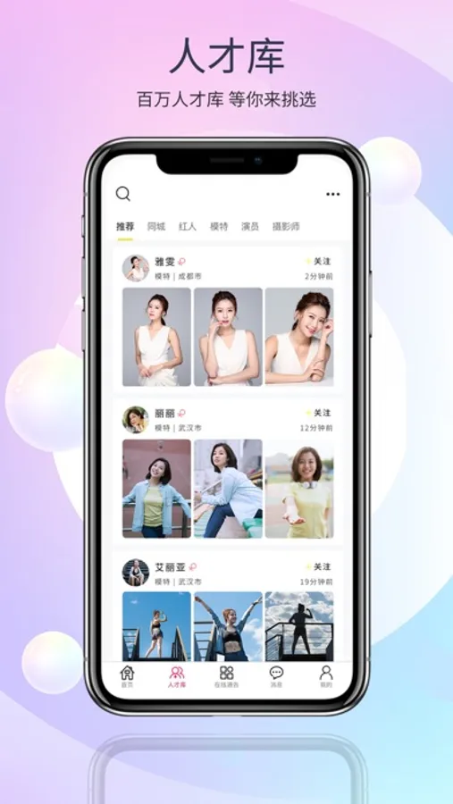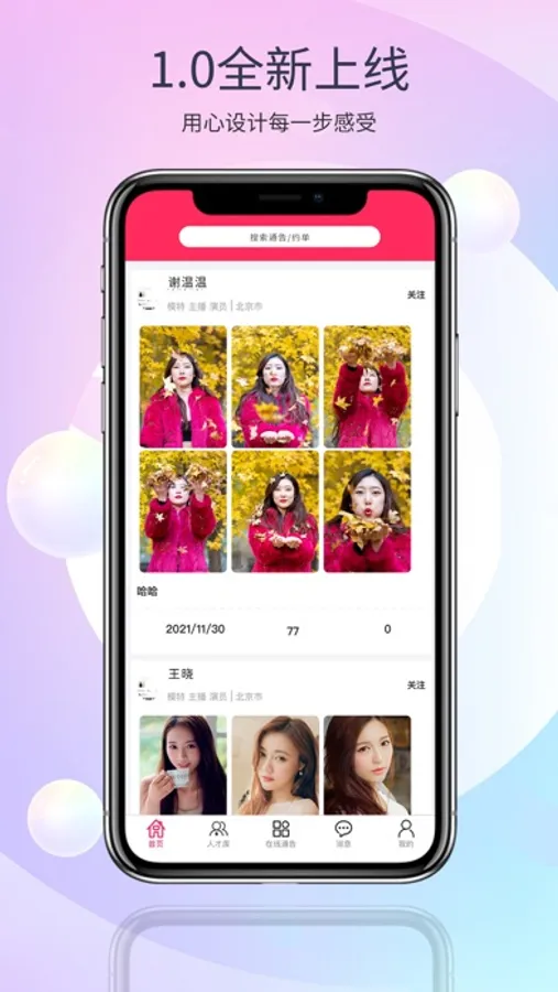 经纪公司发布通告,模特报名申请通告。模特注册自己的资料,经纪公司可以联系约拍。