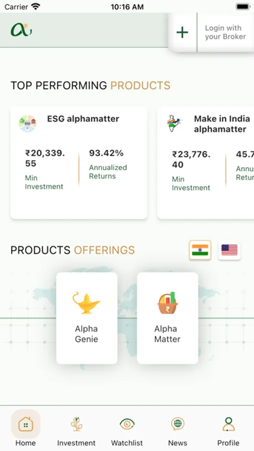 The present product offerings cover a diversified range of Single Stock Ideas, Thematic Investments and Trading Strategies, ETFs and Mutual Funds covering US and India markets.