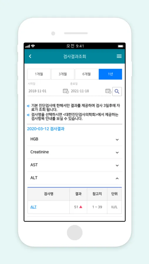 병원에서 받은 진단검사결과를 한눈에 확인할 수 있습니다