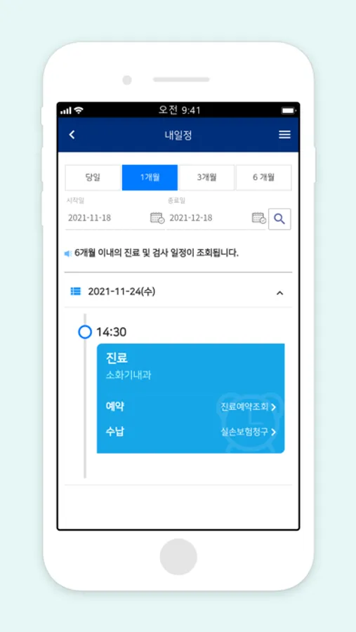 병원에서의 진료 일정을 한번에 보실 수 있습니다