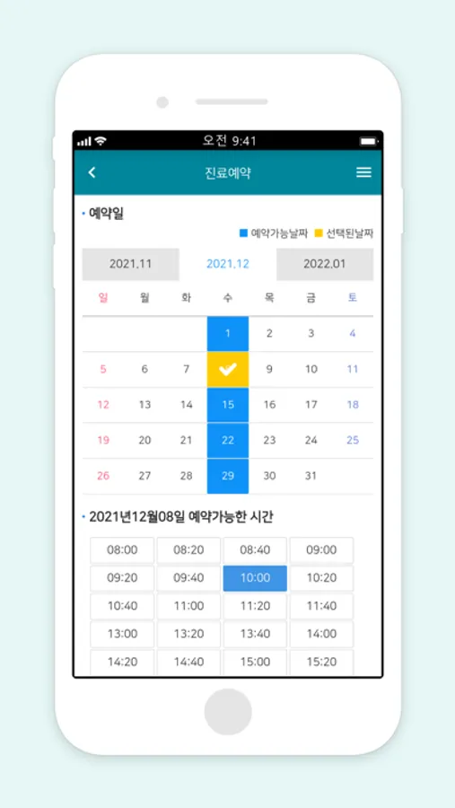 모바일 앱에서 진료예약을 간편하게 할 수 있습니다