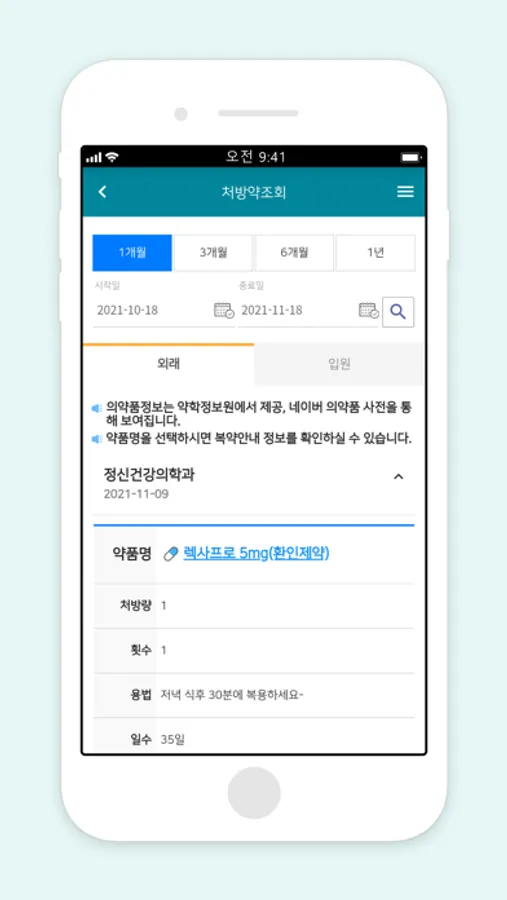 병원에서 처방 받은 약을 한눈에 확인할 수 있습니다