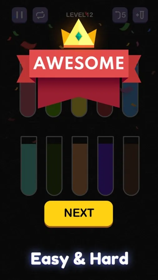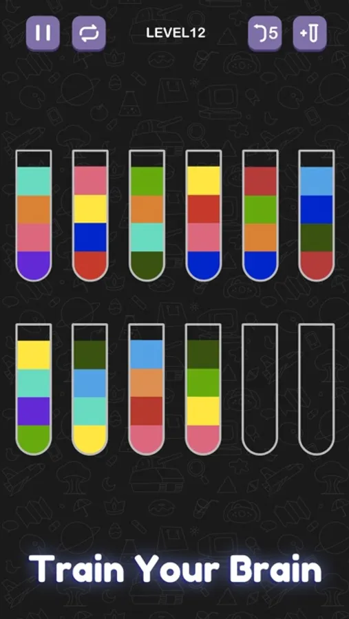 This water sort puzzle game is quite simple but very addictive and challenging. The difficulties of levels are increasing. The higher level you play, the more difficult it would be, and the more careful you would be for each move. This is the best way to train your critical thinking.