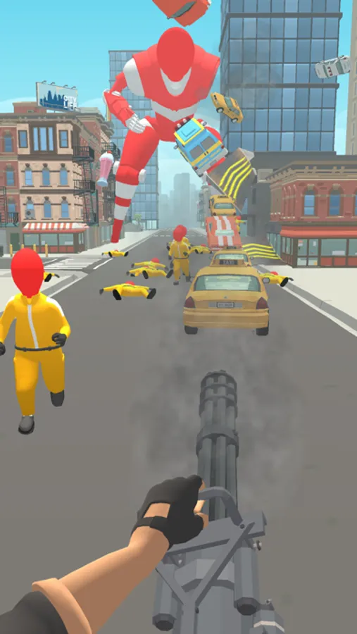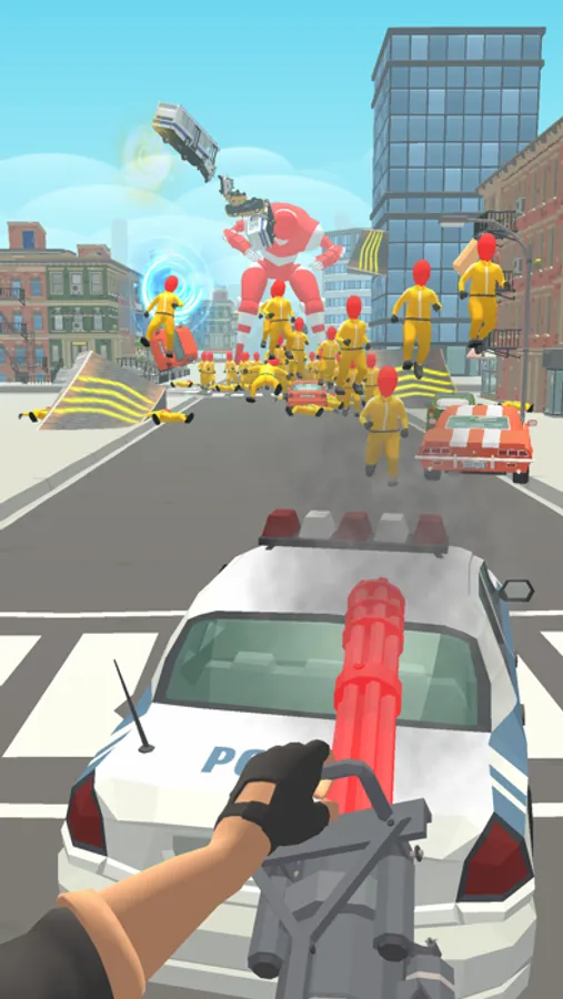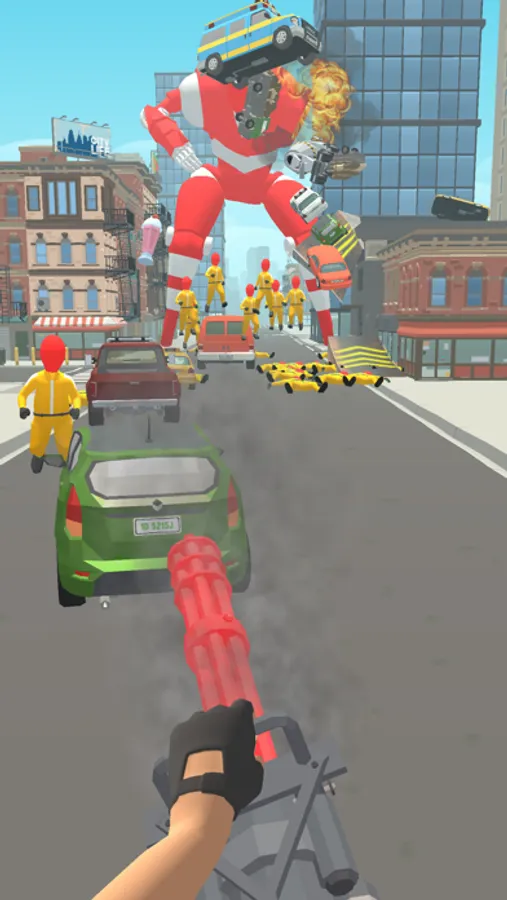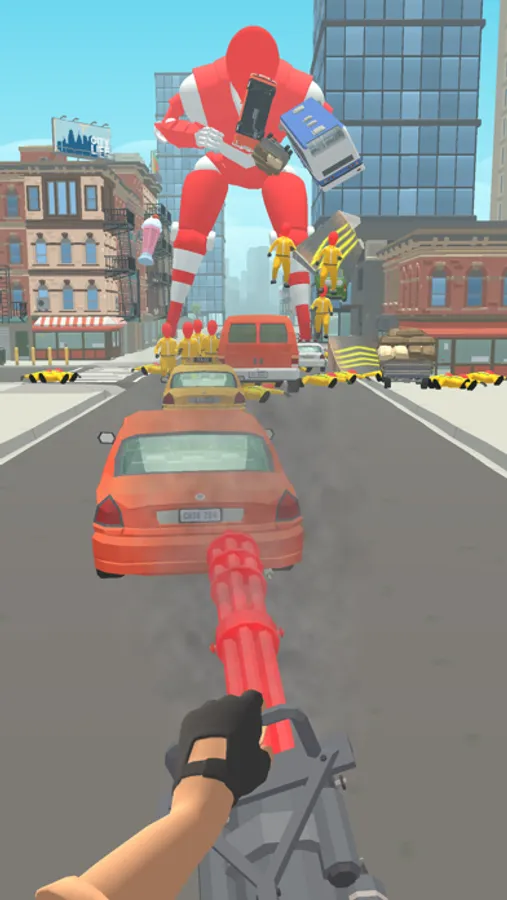 Crush the enemies and giants that come at me using your car gun. Shoot carefully or your gun will heat up and you will be defenseless for a while.