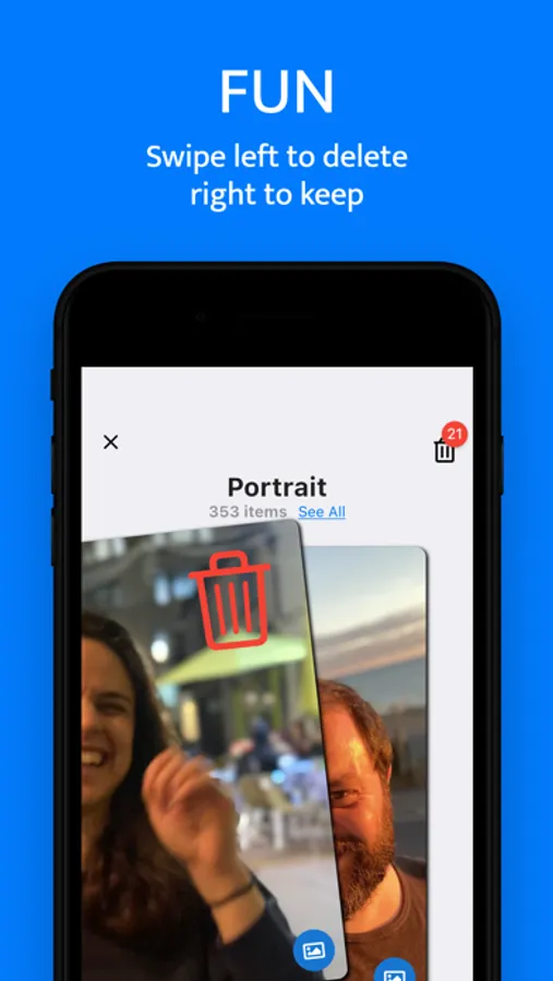 Here is a simple way to keep clean your gallery photos. Swipe right to keep it, left to move to trash.