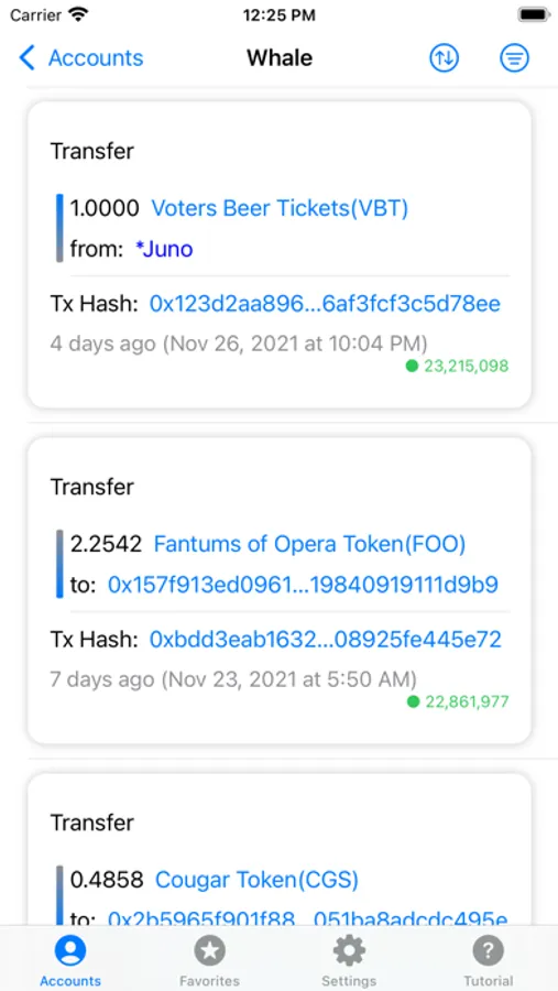 - Keep your favorite addresses, coins, and transaction hashes organized in a dedicated favorites section.